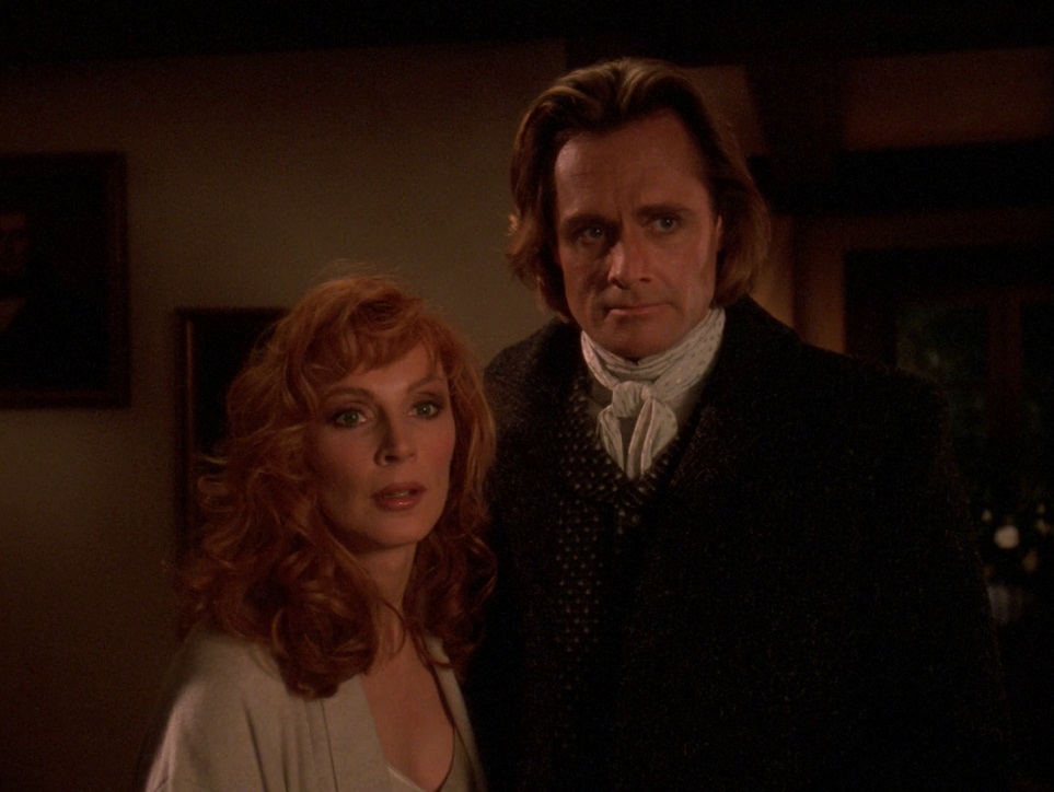 I wish I could say Sub Rosa is better, but it’s not. This is now the fourth episode where we have relatives of crew members nobody cares about, and it’s another candidate for worst episode of season seven. This time Beverly Crusher’s grandmother has died. The crew go to her colony for the funeral, only for Beverly to get swept up in a gothic romance with an anaphasic ‘ghost.’ A family heirloom, a candle, evidently holds an entity that has joined with all of the women in her family going back to the 1600s, and Beverly falls in love with him too. She resigns from Starfleet to go live with her ghost lover, and at the end the snaps out of it and phasers him. The end. I guess she returns to Starfleet too.