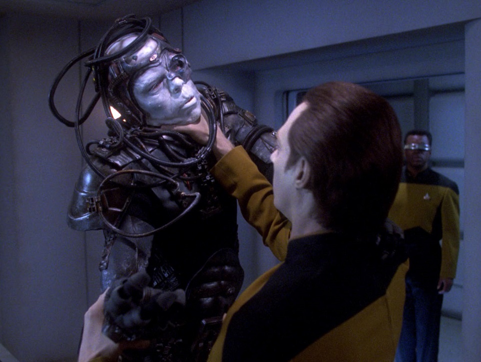 Descent is the final episode of season six, and man it’s been a long time coming! After maybe the coolest poker game ever we run into some old friends. A surprise battle with the Borg leads to Data getting angry and killing the crap out of one with his bare hands! The Borg are back, but they’re different than we’ve seen them before–individualistic, aggressive. Data starts to change after capturing a Borg later on, and then breaks him out of the brig, and the Enterprise chases them through a transwarp conduit right into a trap…