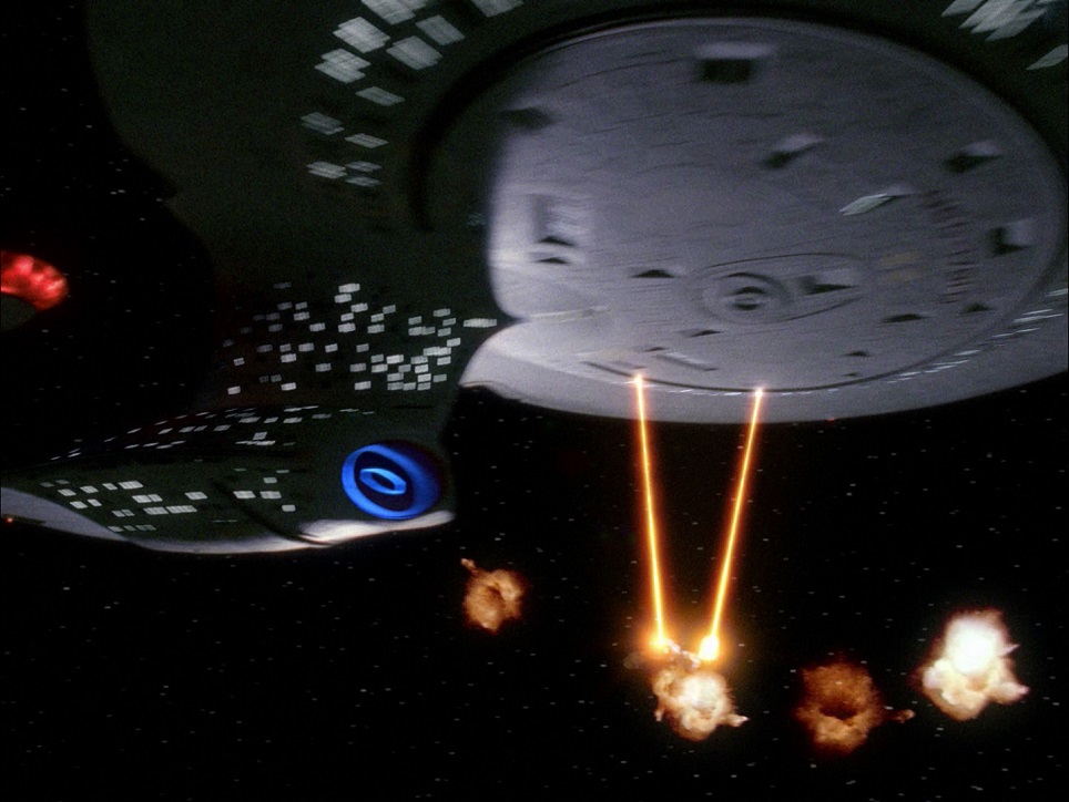 Plot A and B Analysis: The relatively long teaser shows daily life on the Enterprise: Troi playing chess with Data, Dr. Crusher being a doctor, Riker and Ro arguing, etc, when they encounter an unknown starship. Next thing we know everyone’s memory is wiped and the ship computer crashed! Plot A is about the crew trying to put their identities back together and win the “war”, there is no plot B. After a few minutes Worf ends up taking command, but after Geordi gets the computer running the senior staff all learn who they are. Turns out the mission of the Enterprise is to destroy the Lysian’s central command station, an alien species determined to annihilate the Federation. The plot is somewhat uneven, with interesting twists and turns for the first half of the episode, but later scenes don’t really contribute much. It feels as if the writers didn’t have enough plot to fill the 44 minutes so they just inserted some to fill time. The crew has growing misgivings, summed up by a line from Picard: “I feel as though I’ve been handed a weapon, sent into a room, and told to shoot a stranger.” It’s a story that resolves itself in a reasonable but slightly underwhelming fashion.