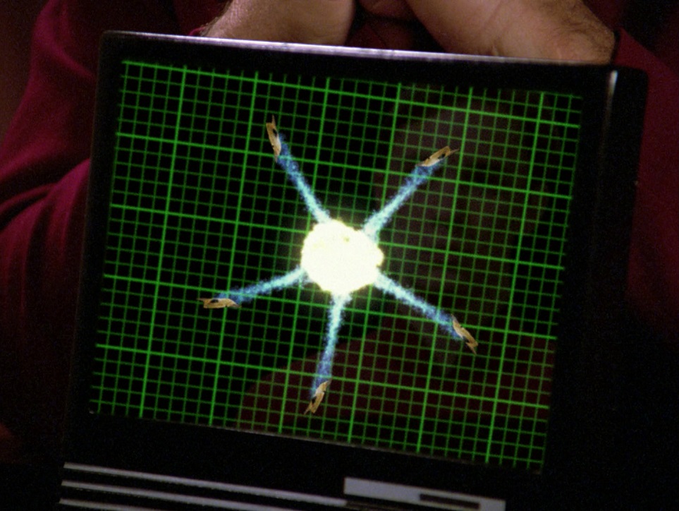 Plot A and B Analysis:  The teaser is brief, but with a great hook. The Enterprise is heading to Starfleet Academy where Picard will give the commencement address when the superintendent of the Academy tells him on a private channel that there’s been an accident involving Wesley Crusher. Plot A involves Wesley and the accident, there is no plot B. We learn Wesley was part of an elite flight squadron practicing for the commencement and there was a collision–one of the five pilots died. The inquiry into the accident is the plot of this episode. During the first day of the inquiry Nick, the squadron leader, blames the dead kid for the accident. During the second day there’s a jaw-dropper: an incriminating photo that proves the squadron clearly deviated from what they testified occurred. Picard figures out they were trying to fly the banned Kolvoord Starburst maneuver and the cover-up, and confronts Wesley in a memorable scene. Wesley is left with a choice: his duty to tell the truth about what happened, or his duty to his friends and team. The final day of the inquiry he makes his choice, and has to live with the consequences.