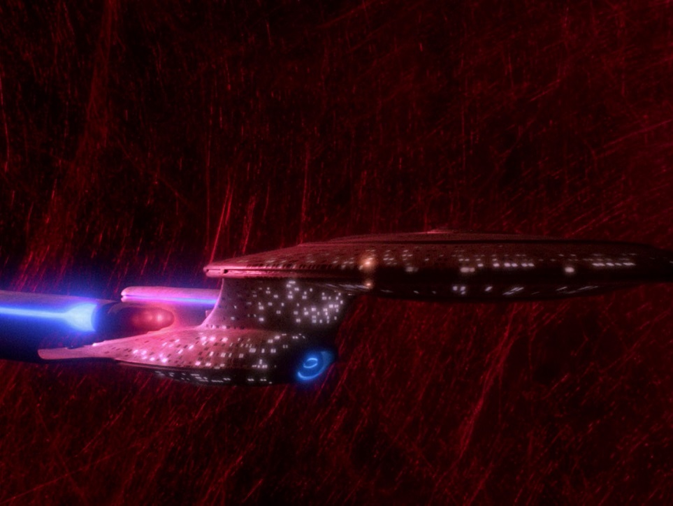 Plot A and B Analysis:  The exceedingly long teaser sets us up for 45 minutes of drivel. Deanna is counseling Clara, a young girl with an imaginary friend, and reassuring her dad it’s normal to have one at her age. The Enterprise enters a nebula and yet again a space-borne entity enters the ship, taking the form of Clara’s ‘friend.’ Plot A is about the friend, Isabella, the stunted plot B is about the problems with the ship. Plot A is off and running, with Isabella immediately taking control of the friendship. Meanwhile the ship hits some kind of drag resistance that the sensors can’t detect but the shields do. Isabella is obviously connected, and she does increasingly annoying and manipulative things, while the crew find out they may be in trouble, caught in a web of plasma strands like a fly in a web. Right before the Enterprise is destroyed by a bunch of alien jerks, Picard talks Isabella into sparing them in one of his weakest speeches ever. The plot is slow and uneven, tending to focus on things that aren’t all that interesting, and the resolution is completely unsatisfying.