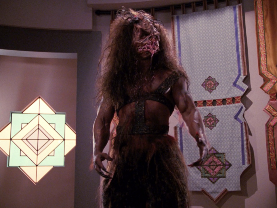 Behind the Scenes/Trivia: Interestingly, according to Larry Nemecek this episode was watched by more people than any TNG episode before it, except the pilot! This record would stand until Unification. What could account for it? The only thing that comes to mind is the promo the previous week. It starts out, “From the gates of Hell comes the ultimate evil” and a shot of Fek’lhr, followed later by a shot of the devil with horns, the whole bit. Everything that follows implies the Apocalypse and a showdown with Satan, which is intentionally misleading. I’ve got to think this is a factor in the high ratings. If people tuned in expecting a battle versus Hell there were a lot of disappointed people out there.