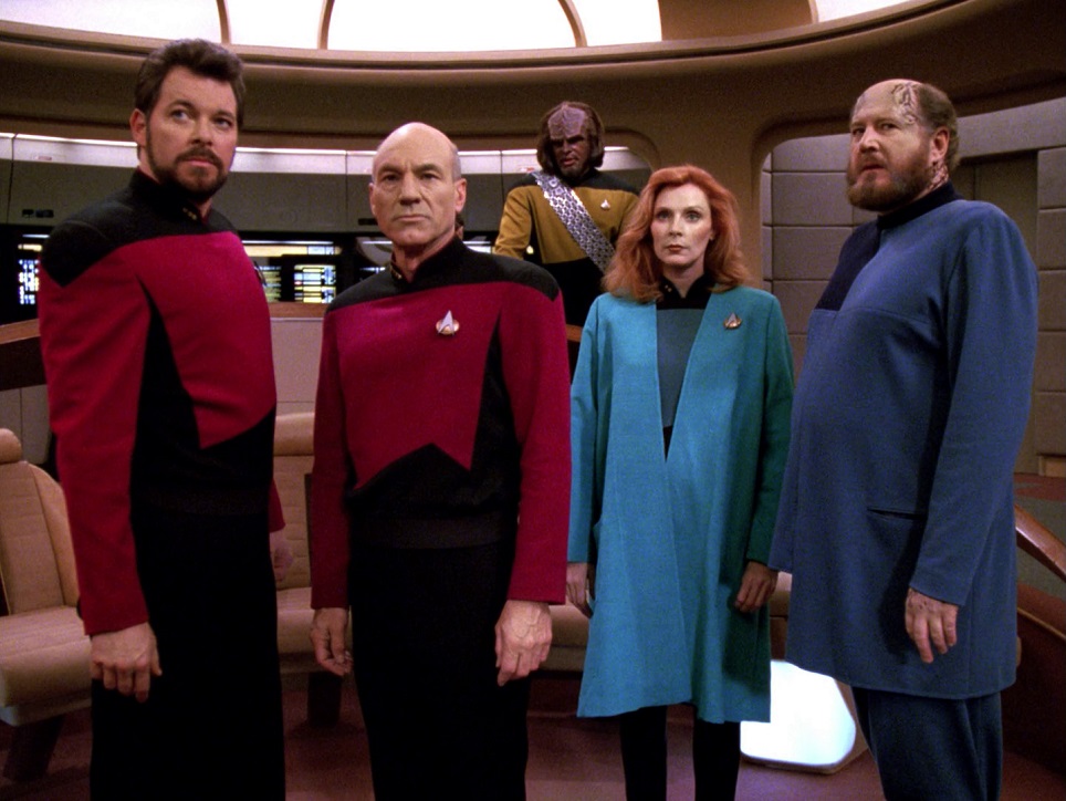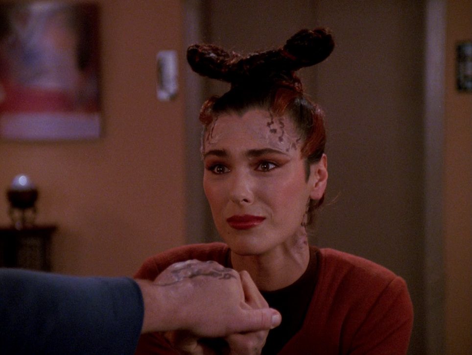 Nitpicks: I can only think of one, a rare criticism of Patrick Stewart. In the opening scene he is hesitantly coming out of his quarters, trying to avoid Lwaxana. I wasn’t a fan of his performance during the whole scene where they walk to the turbo lift. I know it’s supposed to be him feeling awkward, uncomfortable, etc, but I didn’t like the way he played it. I see him acting that way, as an actor, instead of genuinely feeling that way as a character. I wish they’d done a couple of more takes and used one of those. I’m also not sure how I feel about the title of this episode, either.