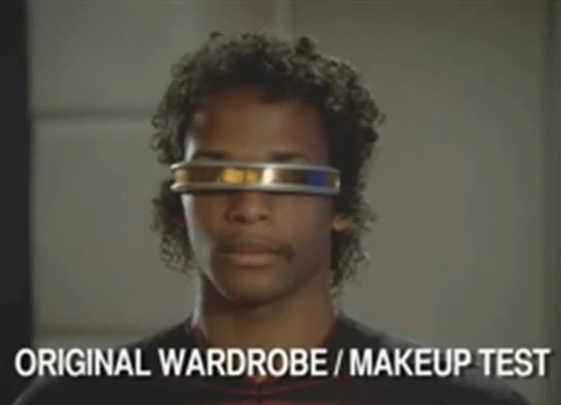 It looks a bit like futuristic sunglasses. Finally some wardrobe tests for the version LeVar would end up wearing, and some make-up tests for Marina. If you look close you can see her huge dark contacts. She would wear smaller, normal-sized ones for the series: