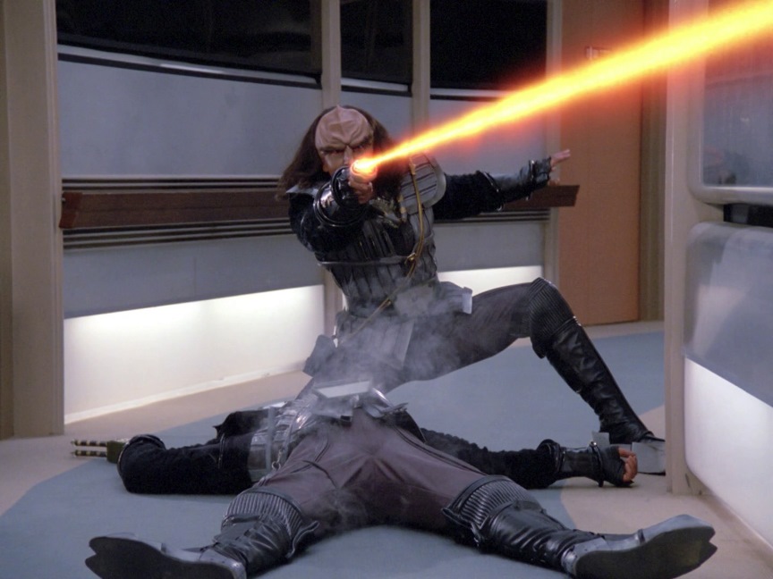 Maybe the final scene is the best though, where Worf has to ultimately decide whether he will kill one of his own kind or not. This was an episode that didn’t pull any punches.