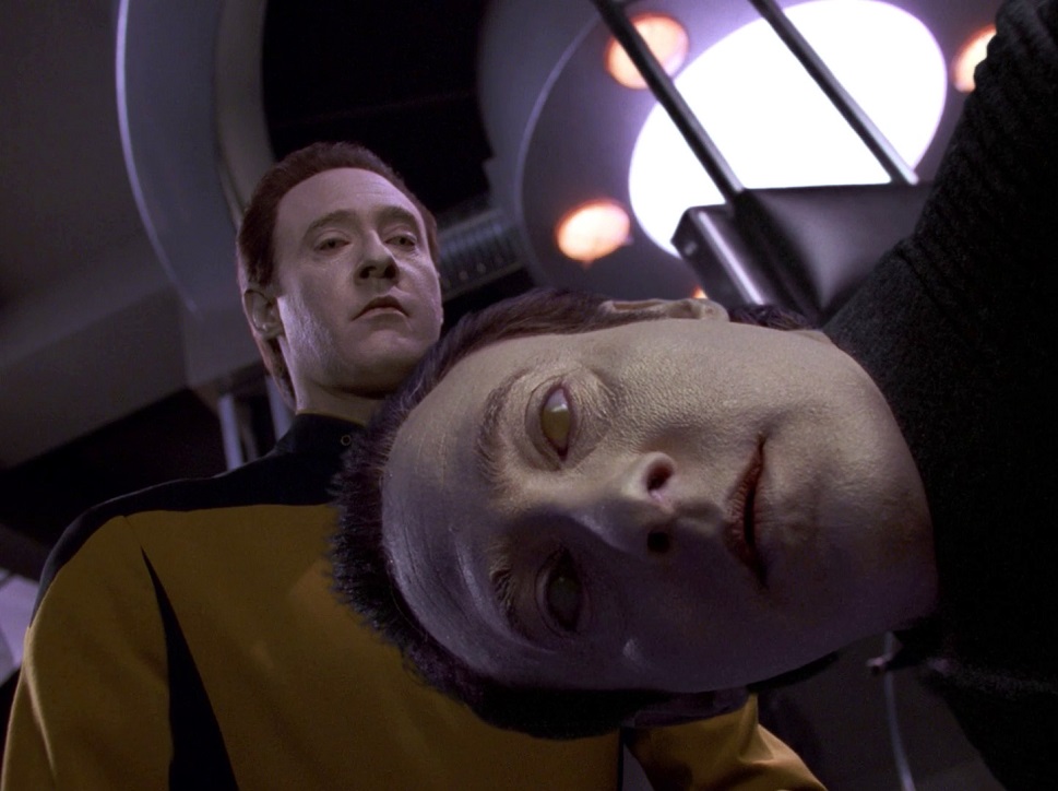 Picard: And what does that program tell you about what you’re doing to Geordi? About what you and Lore are doing to the Borg? It tells you that these things are wrong, doesn’t it, Data? So how can actions that are wrong lead to a greater good?