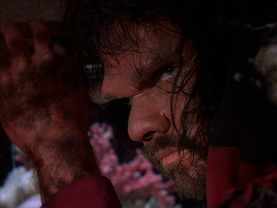 Blu Ray Version: Exceptionally clear, which has been the standard. At 27:10, do you think Frakes is flipping us off? Pause again at 27:25 and you’ll notice that the lionfish in Picard’s quarters has de-evolved into a jellyfish! There is a deleted scene, it occurs right after Deanna leaves the bridge to take a bath. Riker comes in and asks where she is and why it’s so hot, then asks to leave because he’s not feeling well. It doesn’t contribute much but I wouldn’t have minded leaving it in.
