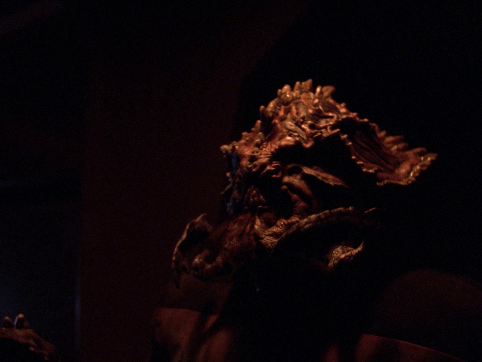 Behind the Scenes/Trivia: Gates McFadden finally gets to direct an episode! She’d only been waiting since season one. There won’t be another woman directing Star Trek until the Voyager episode Riddles. Unfortunately, Genesis is tied with Bloodlines and Emergence as the least-watched episodes of season seven. Gates has said she loved directing this episode, and she loved that it wasn’t standard Star Trek fare: “c’mon, I got to direct an iguana!” She had the idea to have Barclay made up as a spider and have him drop from the ceiling upside down–which would’ve been great–but the studio nixed it. She also thought Michael Westmore should have won an Emmy for his makeup. It was nominated but didn’t win. What did it win an Emmy for? Sound Mixing. It’s a little known fact that this is where I learned the word nictitating. Last but not least, Google “pygmy marmoset.” They’re adorable!