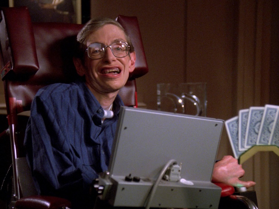 Evidently while Stephen Hawking was touring the set, he saw the Warp Core and said, “I’m working on that.” Hawking was on the Paramount lot to promote the video release of his movie, A Brief History of Time, and he wanted to visit the set because he is a fan of Star Trek. He asked to sit in the captain’s chair that day, later saying , “It is rather more comfortable and a lot more powerful than my wheelchair.” From here there are two different versions of the story. In the first one, some weeks later he called and said he’d love to be on the show. In the second one Rick Berman called and asked him to be on the show, and Hawking agreed. The “perihelion precession of Mercury” alluded to in the poker game is a real thing. It could not be explained by Newtonian physics alone, and was regarded as a major flaw of Newton’s theory, but it later was explained by Einstein’s General Theory of Relativity. Hawking’s comment “Wrong again, Albert,” when revealing his winning hand is a reference to the professor’s life work in physics, in which he disproved some of Einstein’s theories.